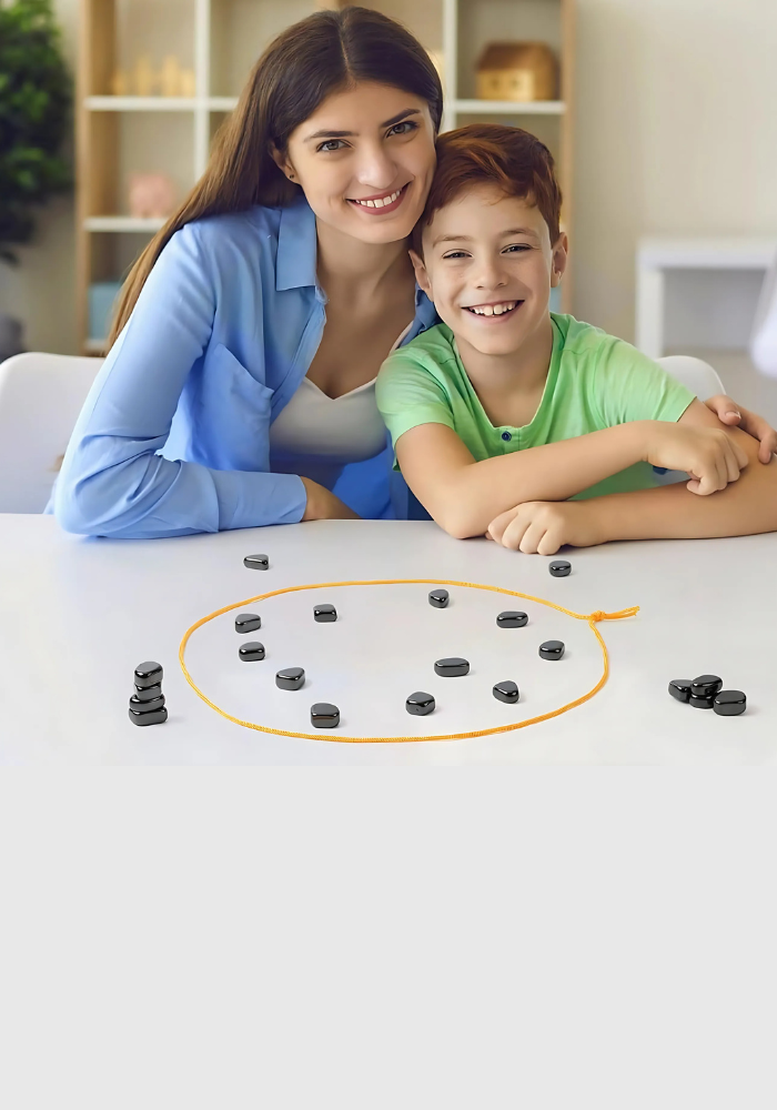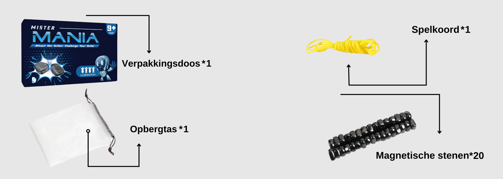 Dit is een super leuk en spannend spel voor kinderen en volwassenen, heel simpel maar super tactisch! Leg het touw in de gewenste vorm, verdeel de 20 magneten onder maximaal 4 spelers en leg een voor een het magneet in de kring. Maar PAS OP! Als ze naar elkaar toe trekken zijn de magneten voor jou. Zo speel je door tot de speler die als eerst al zijn magneten in het veld heeft gelegd, dat is de winnaar. Met dit spel kan je heel veel verschillende spellen bedenken, kleine tip: kies voor 2 spellen. 40 magneten is natuurlijk nog uitdagender om te spelen!